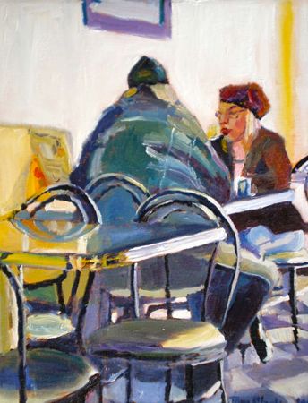 I love the chairs and tables/ light and reflection in this painting.