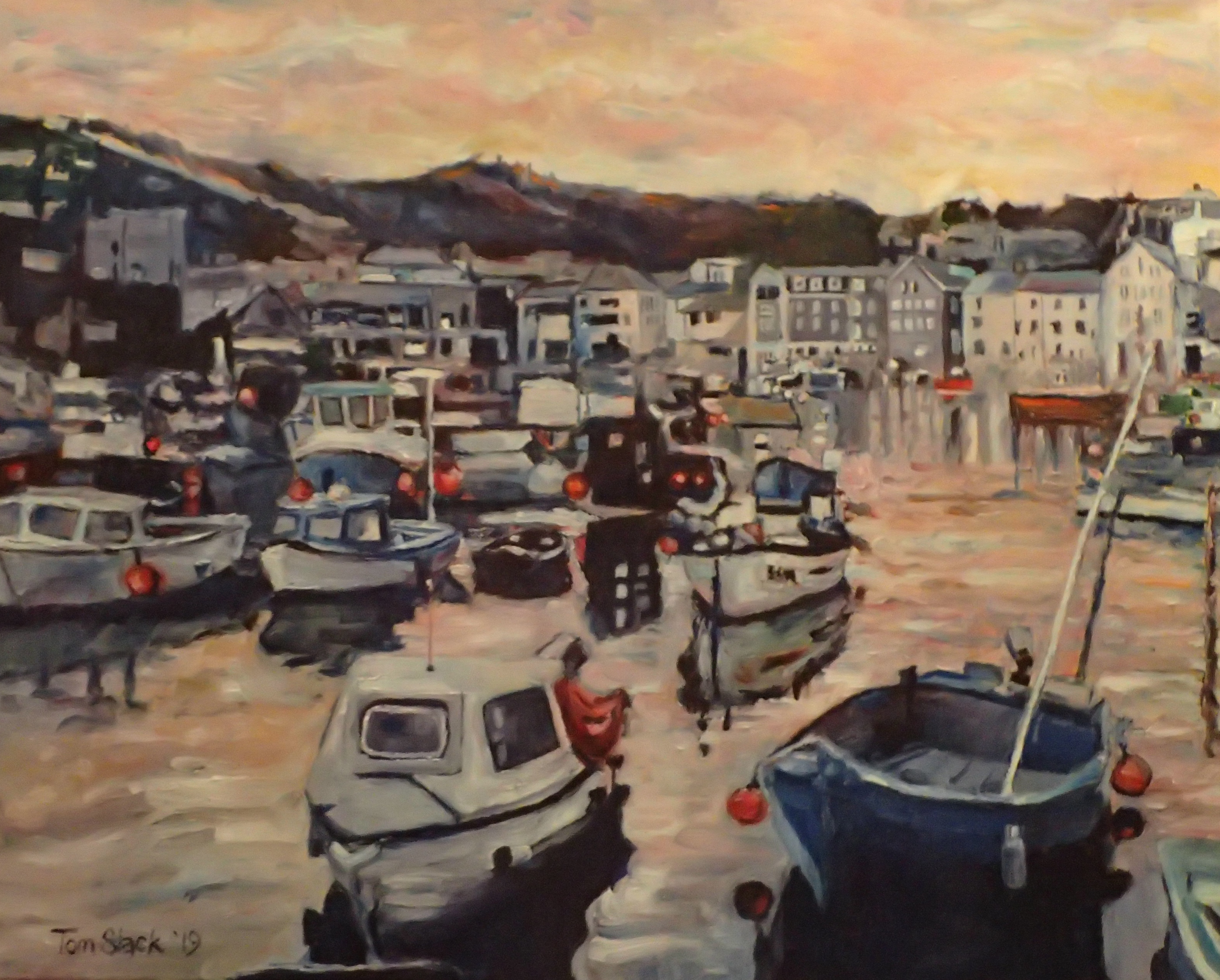 This is a portrayal of boats in the harbor with the sunset reflected in the water. I’ve painted a lot of boats and will continue to do so, but there is just something magic about that subject. This painting is my personal expression, just as someone sings, etc. I guess I was singing with my paint brush.