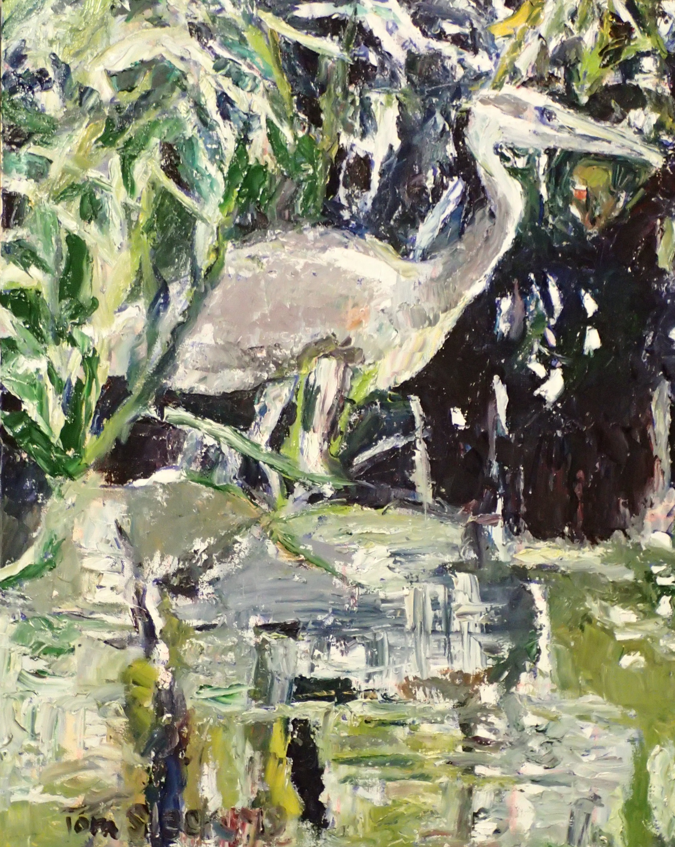 This is a knife painting–instead of using brushes, the paint was applied by palette knife–it was loaded with paint, then wiped on the canvas.