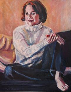 When I do a portrait I try to create a mood. I want to enhance the personality of the subject. Joanna is a warm, sensitive person. The background color reflects that. I have also tried to show reflected colors on her white sweater. She doesn’t look posed. Her expression is as though she is thinking pleasant thoughts.