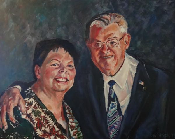 My sister, Barbara became a young widow at age twenty-nine. She had two children she had to raise by herself. After many years, she married a widower named Reid. They had a delightful time together. She felt the love and fulfillment she had missed for so long. After about thirteen years, Reid suddenly passed away. The day he died, I started painting this portrait. I hope it gives my sister some comfort and some wonderful memories of the past.