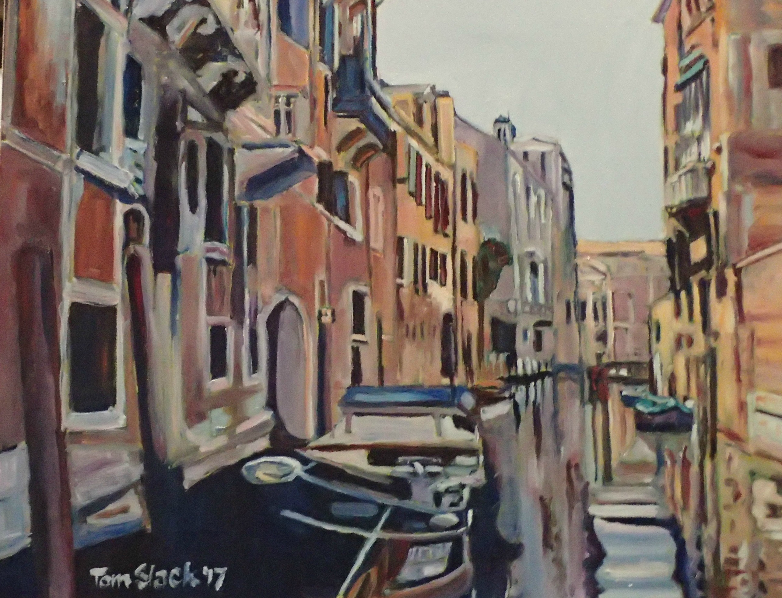 This is a painting of Venice. It gives the impression of depth — the viewer could go right into the painting. This is done with linear and atmospheric perspective. In the linear the water is wider at the bottom of the picture and gets narrower as it goes back. Atmospheric is demonstrated by the boat in the front being bigger than the ones further back.