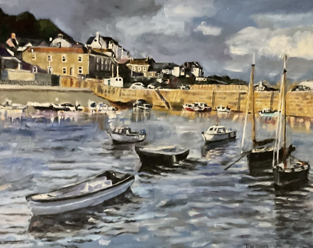 I had the opportunity to visit harbours in Cornwall, UK. I was especially impressed by Mousehole Harbour and I wanted to do a painting of it.